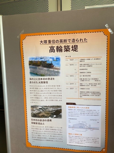 当日会場には大隈重信や高輪築堤に関する掲示がされてちょっとした資料館のよう。
